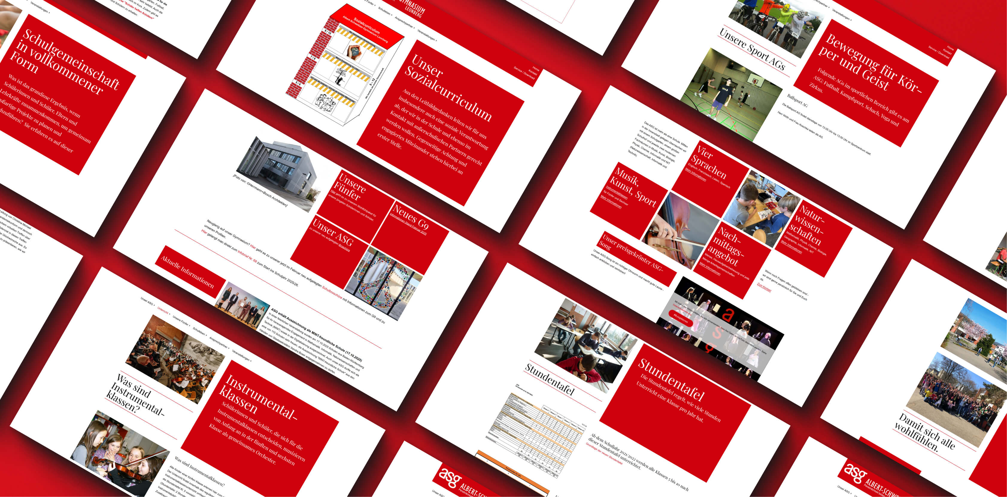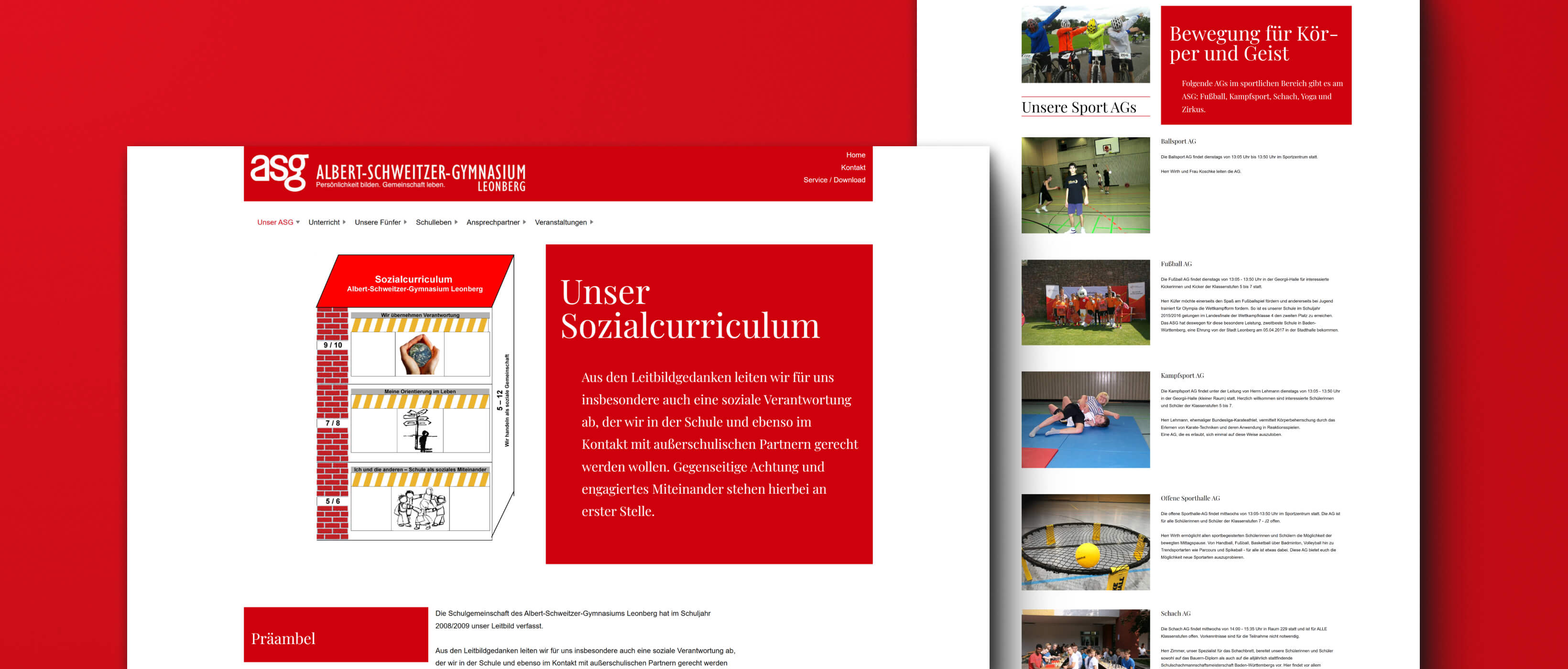 Vom Albert-Schweitzer-Gymnasium wurden wir beauftragt, den alten Auftritt durch einen neuen, modernen Auftritt zu ersetzen. Der Relaunch sollte sich nicht nur technisch, sondern auch konzeptionell an neue Herausforderungen angepasst werden. Die Umsetzung erfolgte im leistungsstarken Contao, das benutzerfreundlich und für Redakteure schnell erlernbar ist. Änderungen im Schulalltag oder Termine werden im Nachrichtensystem von Contao unkompliziert eingepflegt und bearbeitet. Für die Optik entschieden sich unsere Webdesigner das ausdrucksstarke Rot, das die Schule in ihrem CI trägt, aufzugreifen und grafisch, plakativ umzusetzen. Der umfangreiche Inhalt wurde neu strukturiert und so angelegt, dass er vom Team des ASG eingepflegt werden konnte. Das Projekt wurde kurzfristig innerhalb von ca. 3 Wochen realisiert und online gestellt. Unserem Kunden war eine schnelle Realisierung und Live-Schaltung der Homepage wichtig.