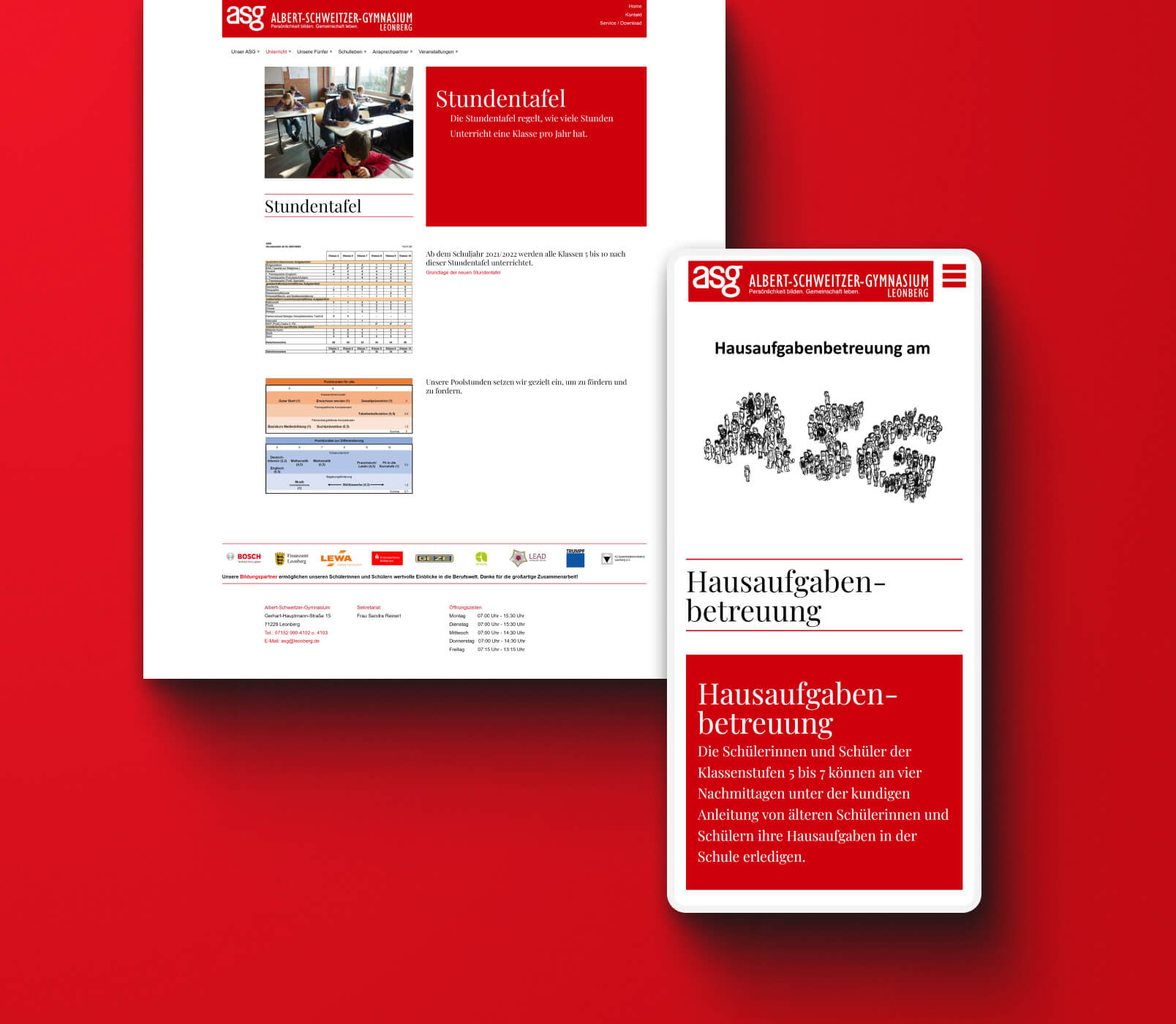 Für das Albert-Schweitzer-Gymnasium haben wir einen neuen, modernen und voll mobilfähigen Internetauftritt erstellt. Die Farbgebung ist bewusst in kontraststarkem Rot gehalten.