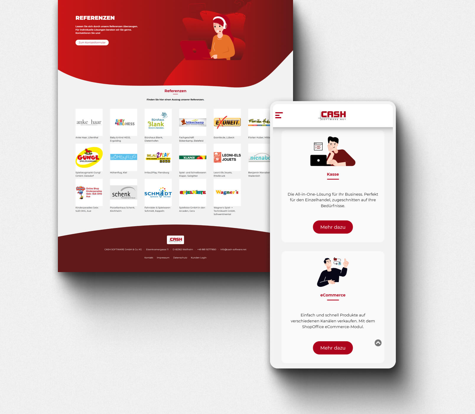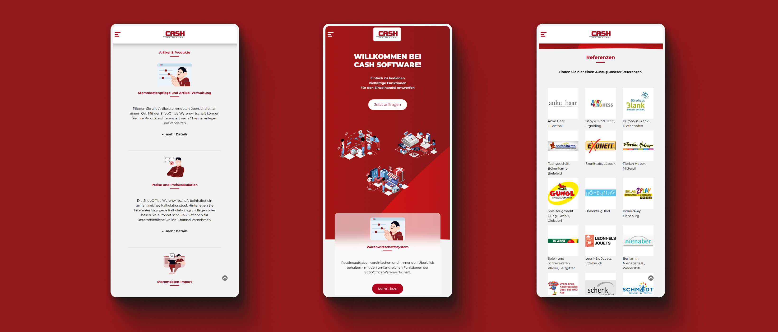 Um für Cash Software eine aussagekräftige und nachhaltige Werbemöglichkeit zu schaffen, haben wir eine ausführliche Referenzenseite angelegt und gepflegt. Hier bekommt man einen Überblick über einige der vielen Kunden, die mit ShopOffice ihre Betriebe erfolgreich verwalten und führen.