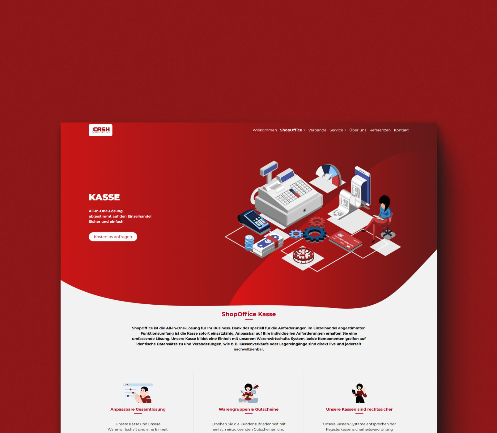 Neben der technischen Umsetzung der Website haben wir vor allem gestalterische Aufgaben für Cash Software übernommen. Ein einheitliches Design wurde von uns konzeptioniert, das durch Farbgebung und Seitenelemente einen ästhetischen Onlineauftritt schafft. Durch zahlreiche grafische Arbeiten haben wir abwechslungsreiche Detailseiten erstellt, die wenig textlastig über die Möglichkeiten und Funktionen der Softwareprodukte informieren.
