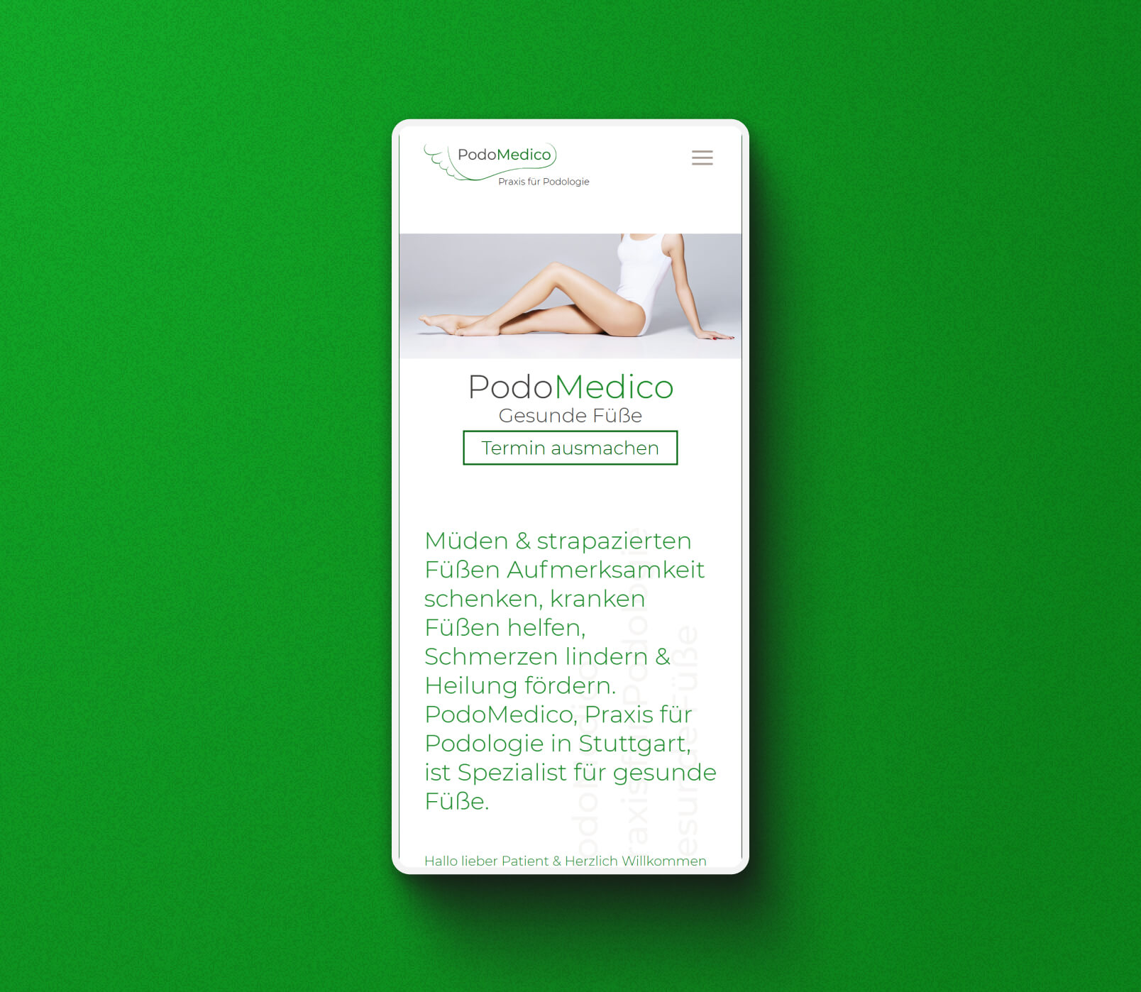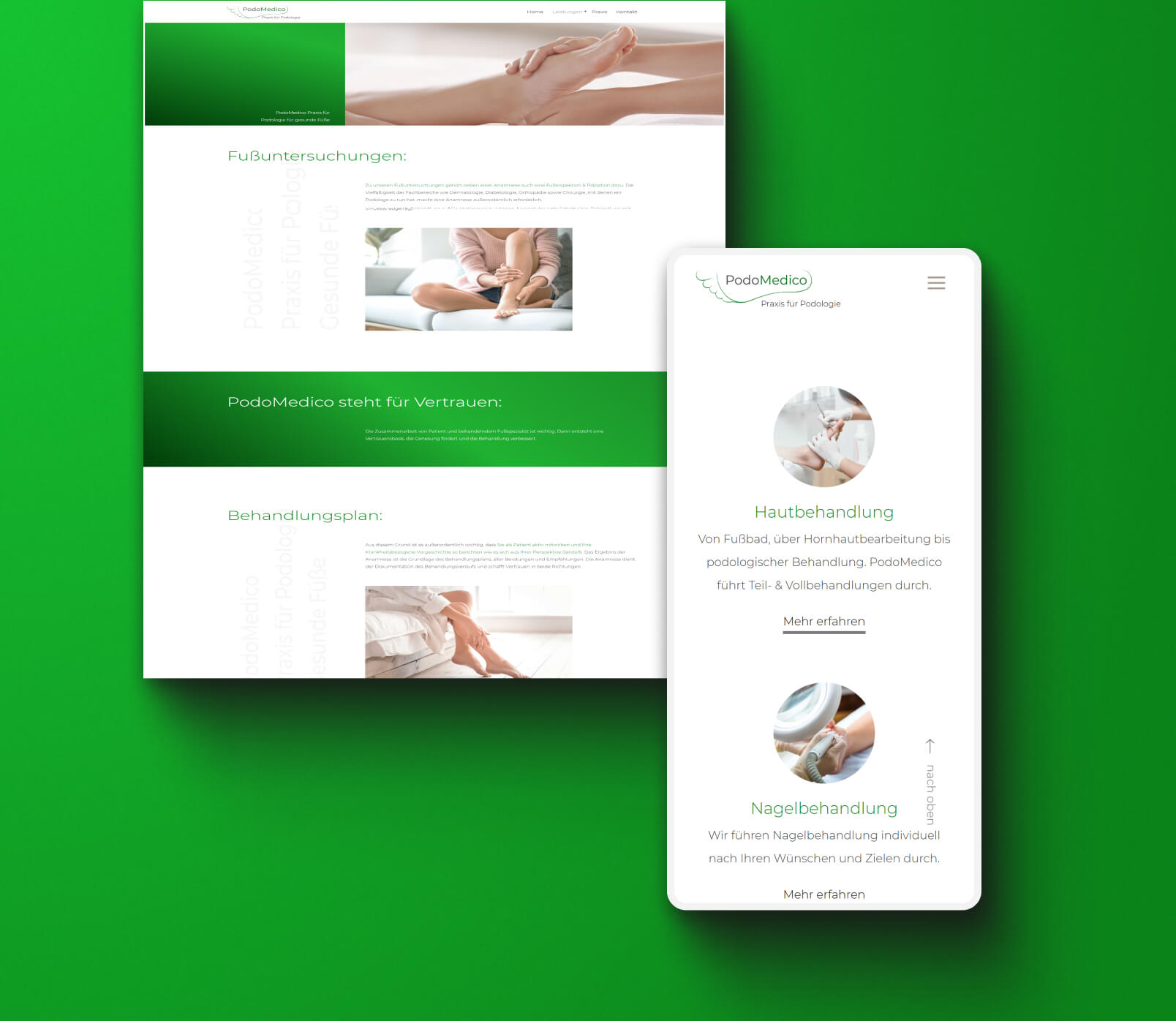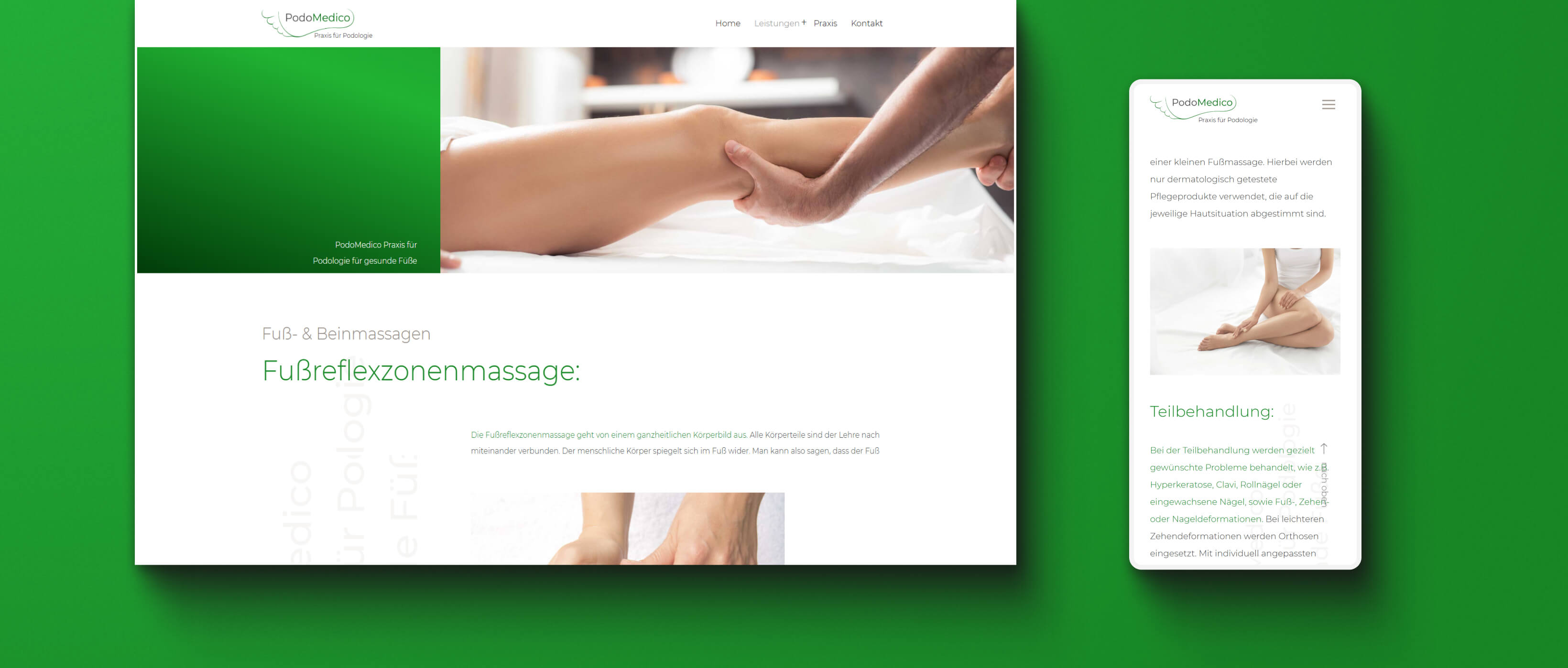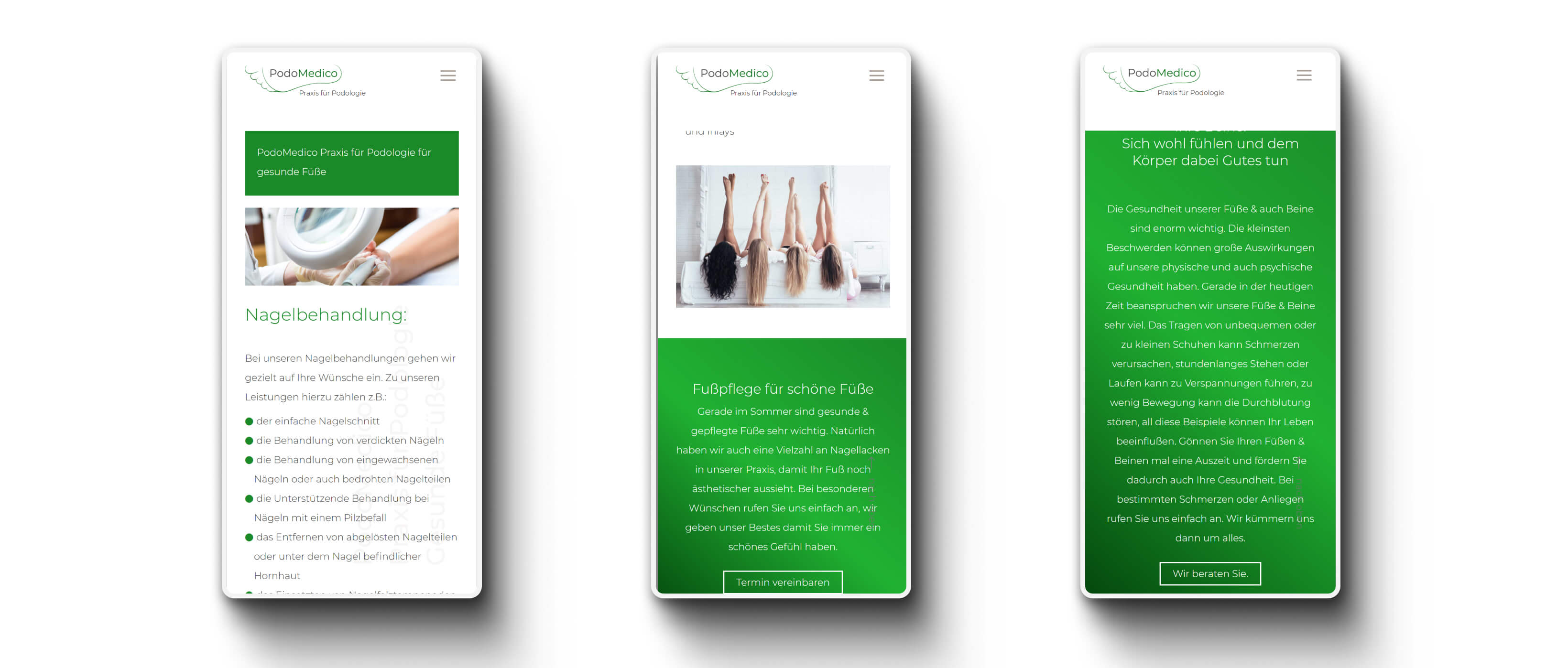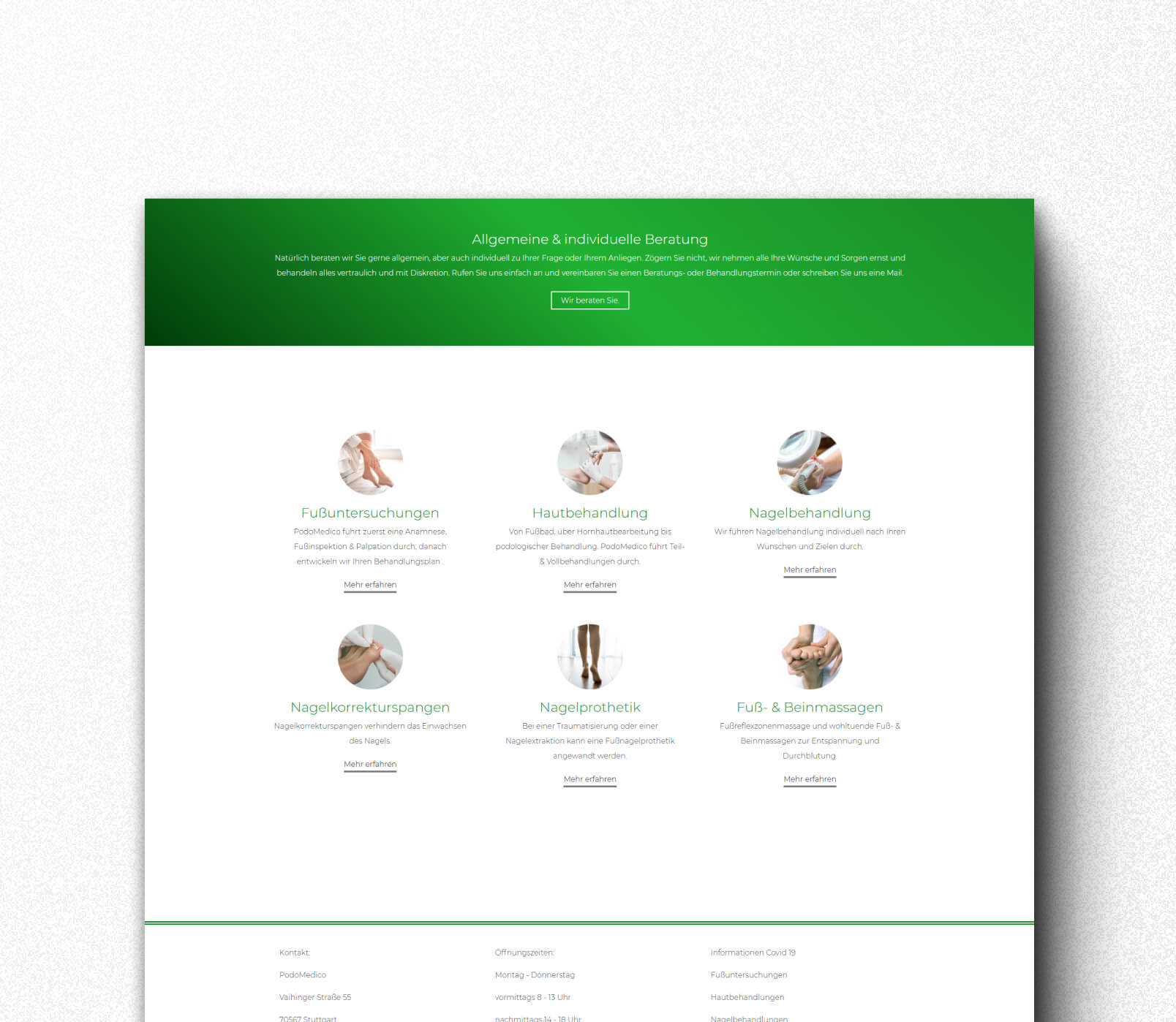 Im Rahmen unseres Service für Podomedico, haben wir besonders auf ein hochwertiges Webdesign wert gelegt. Es war uns ein Anliegen die Leistungen und Untersuchungen der Praxis für Podologie übersichtlich auf der Website zu präsentieren und dabei Professionalität und Gesundheitsbewusstsein zu vermitteln